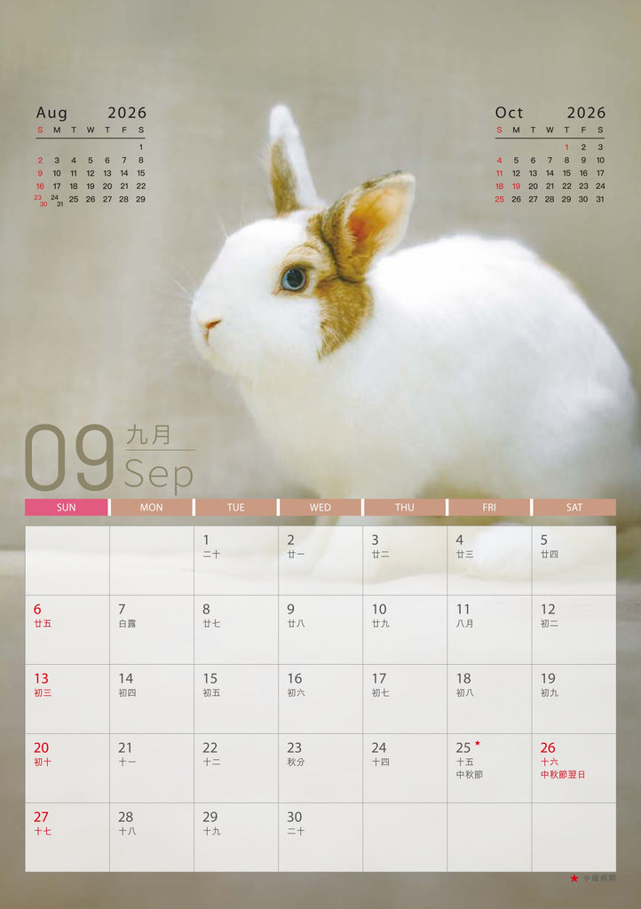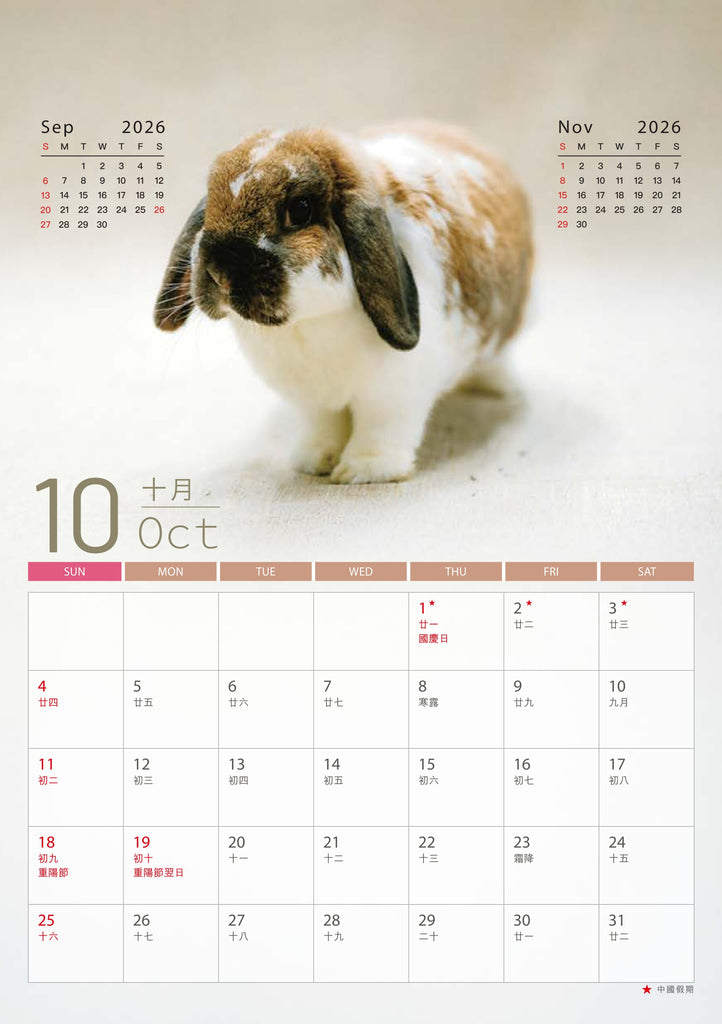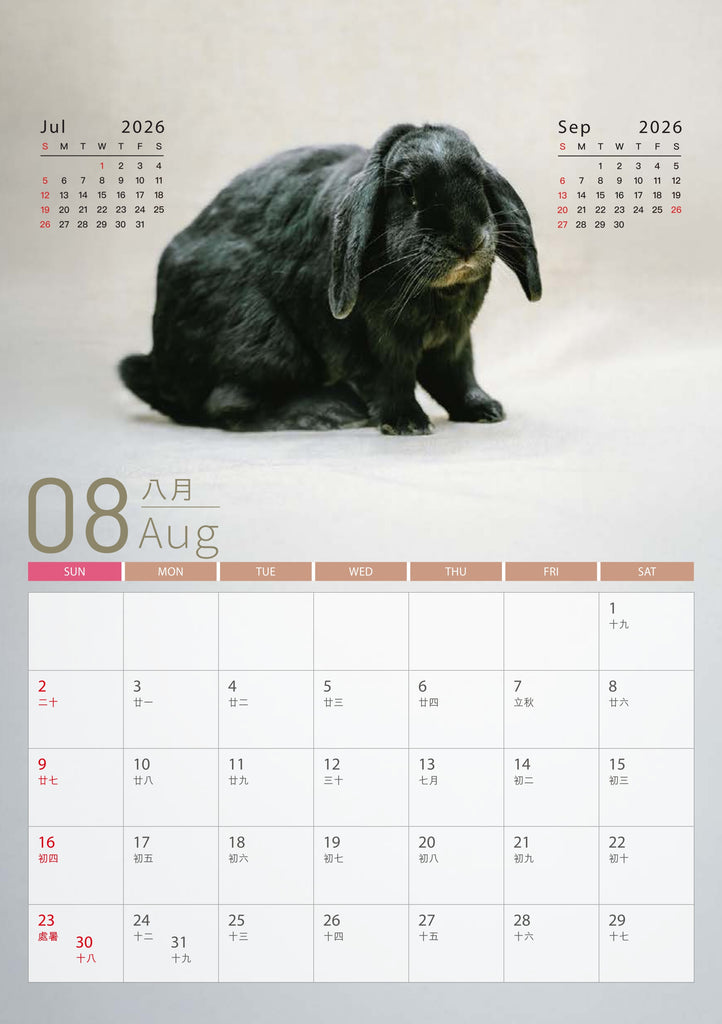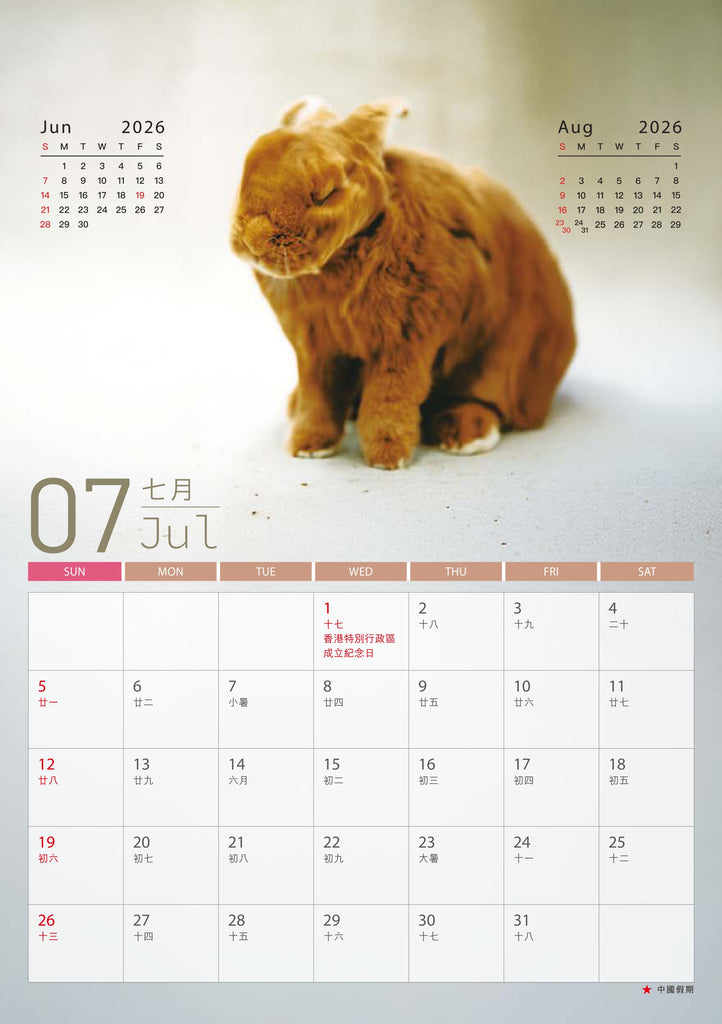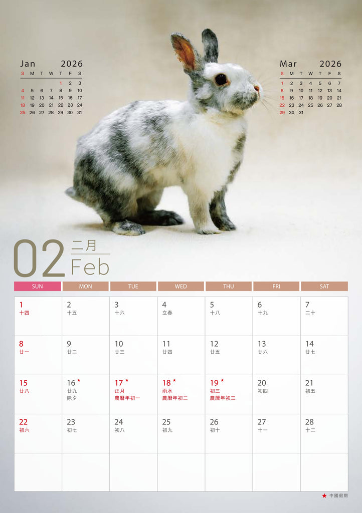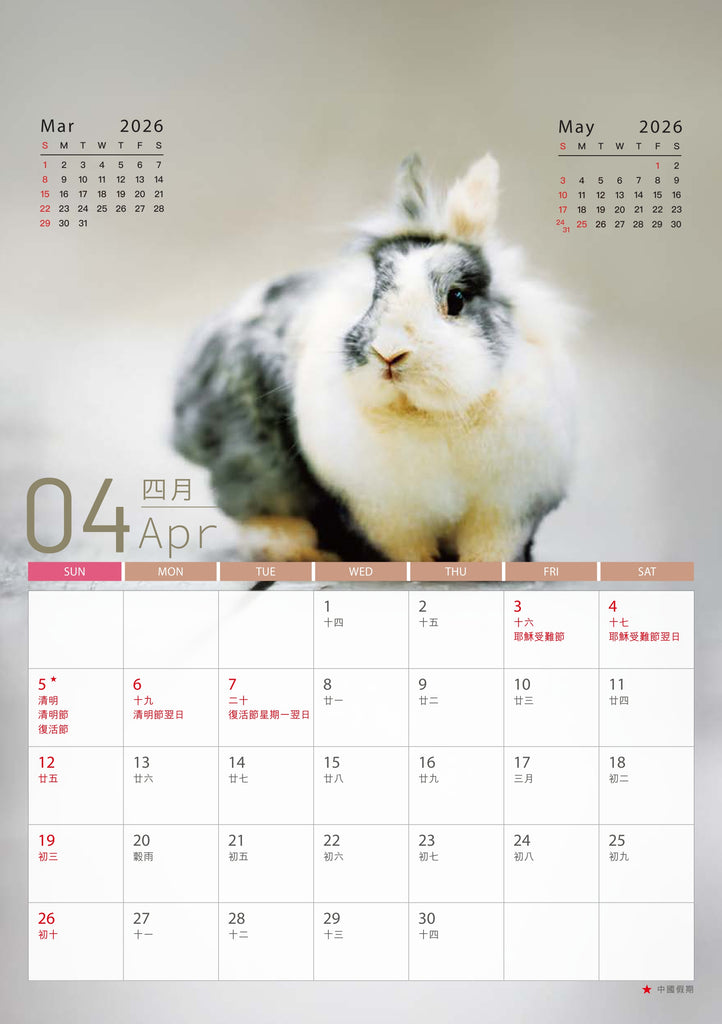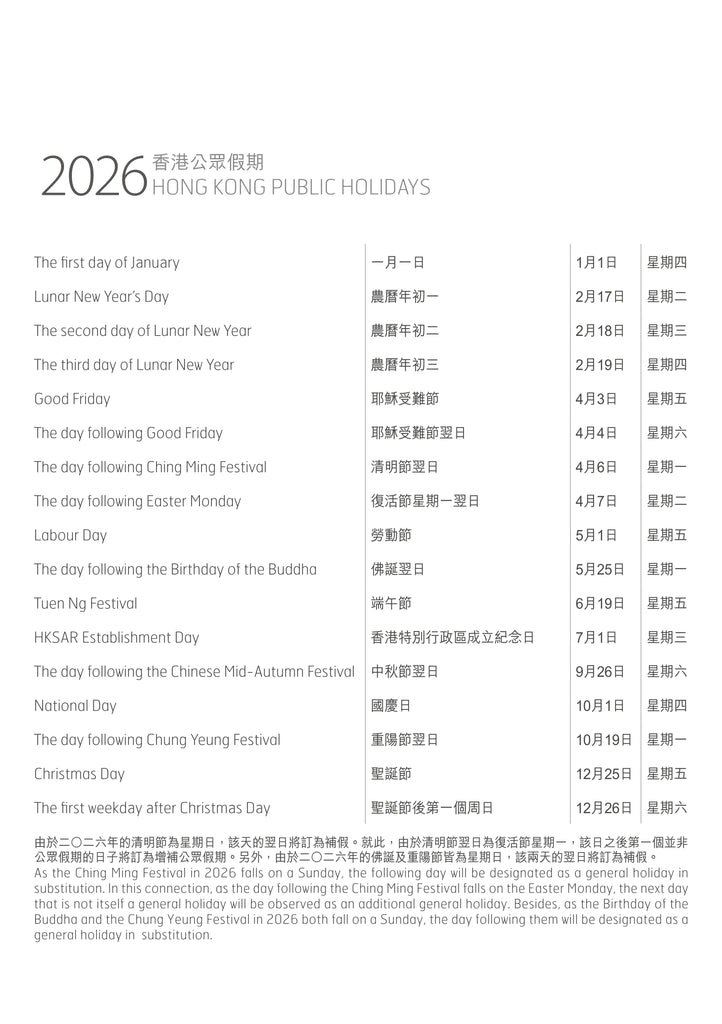 - 年曆卡:14.8cm (W) x 21cm (H) 隨月曆免費附送 (數量有限,派完即止)